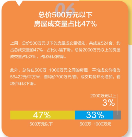 上周成交1565套,环比减少55套;对应的成交均价约为56431元/平方米,环比微升。