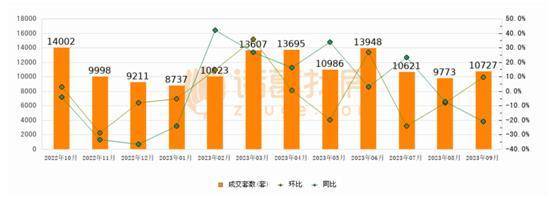 另据诸葛找房,9月北京新建商品房成交10727套,较8月增加954套,环比上涨9.8%,同比下降21%。