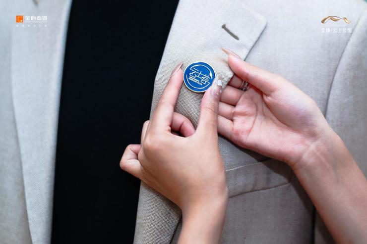 迎宾小姐为到场的诸位佩戴上专属勋章