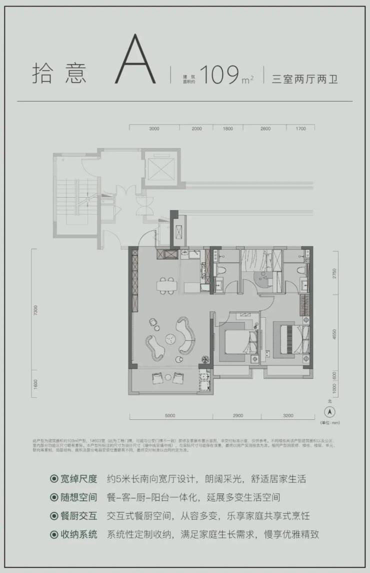 项目两大主力户型,分别为建面约109、139㎡,三房两厅两卫设计,南向宽厅、交互式餐厨空间,非常契合改善家庭需求。