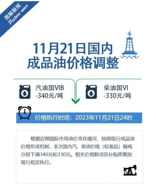 从11月21日24时起,国内汽柴油每吨分别下调340元和330元。全国平均来看:92号汽油每升下调0.27元;95号汽油每升下调0.28元;0号柴油每升下调0.28元。加满一箱92号汽油,将少花13.5元。【…