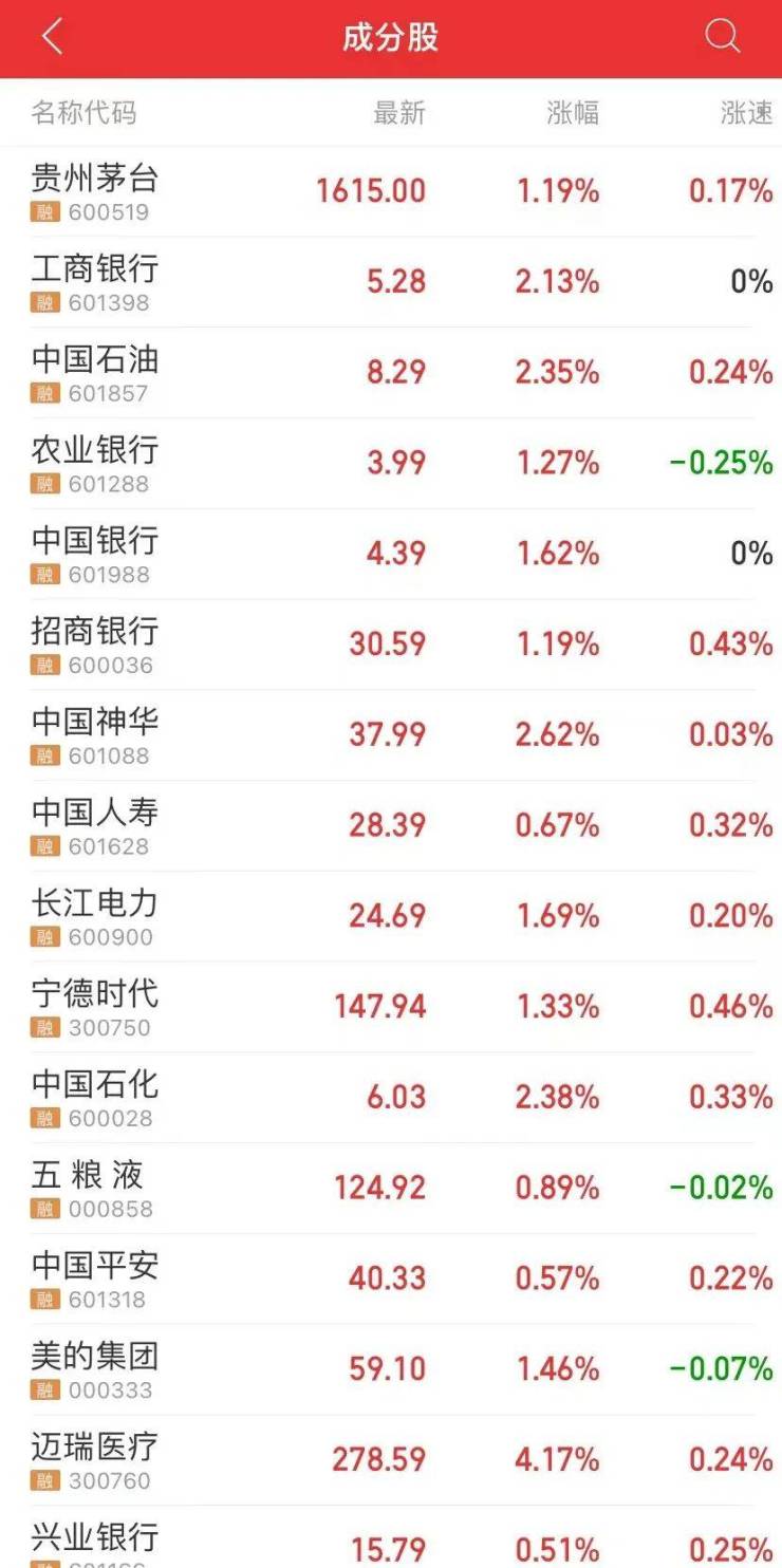 盘面上,上涨个股中大多数市值排前列,银行等权重板块较为活跃,其中工商银行、中国石油、中国神华、中国石化等涨幅均超2%。