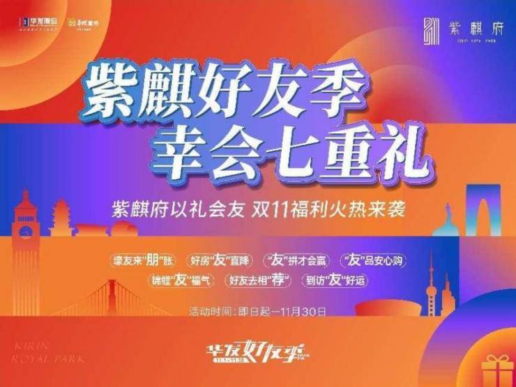 紫麒好友季,礼遇美好时光。双11限时狂享七重礼,重磅福利应“友”尽有。紫麒府倾力推出七重超值好礼,掀起城东狂欢购热潮,超值给“利”!
