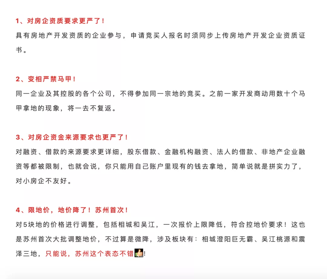 大家还记得前几天,苏州土拍新政加码的事情吗?