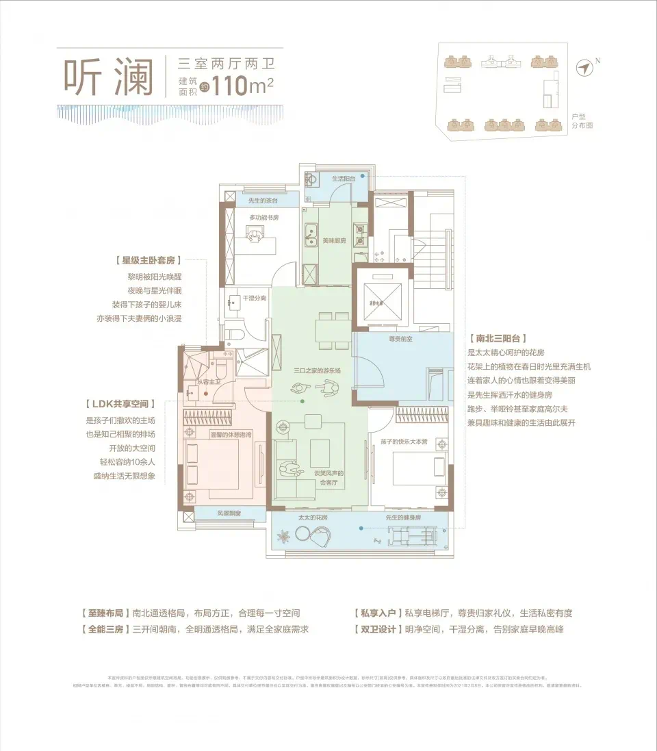 新城水岸云际目前已公开售楼处及样板间,项目预计4月中下旬首开,首开楼栋为1、2、3号楼,共计约252套房,户型均为110㎡三房两卫,全部为一线临河景观房。