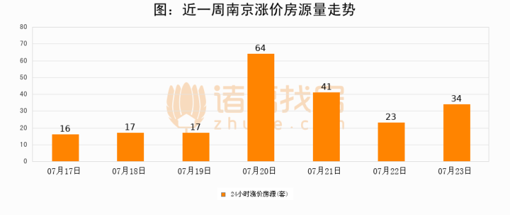 根据诸葛找房数据显示,南京24小时涨价房源量为34套,较07月22日增加11套,环比上涨47.8%。与此同时,涨价房源占比小幅扩大,业主信心有所提升。