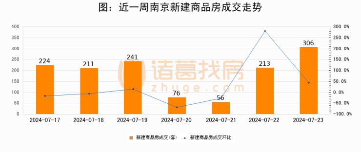 【南京成交日报】07月23日新房成交306套、二手房400套;涨价房源34套