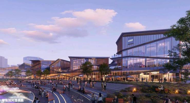 规划设计方案选取帷幔、秦淮院落、云锦、南京城墙等不同主题元素,通过中心广场、跨河人行步桥、建筑连廊、沿河景观等设计塑造动静结合的公共滨水商业空间。