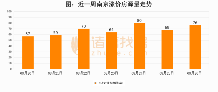 根据诸葛找房数据显示,南京24小时涨价房源量为76套,较08月25日增加8套,环比上涨11.8%。与此同时,涨价房源占比小幅扩大,业主信心有所提升。