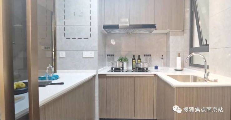 厨房采用U型操作台面,使用空间更大,烹饪更为方便。硬件方面,老板或同档品牌的油烟机、灶具,科勒或同档品牌的水槽、龙头……烹饪从此更为便捷。