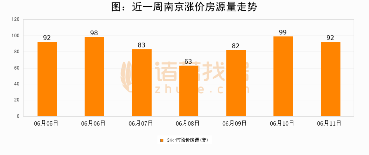 根据诸葛找房数据显示,南京24小时涨价房源量为92套,较06月10日减少7套,环比下降7.1%。与此同时,涨价房源占比小幅回落,对于购房者来说是一个入市窗口期,购房者可抓住时机入市。