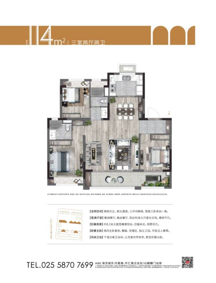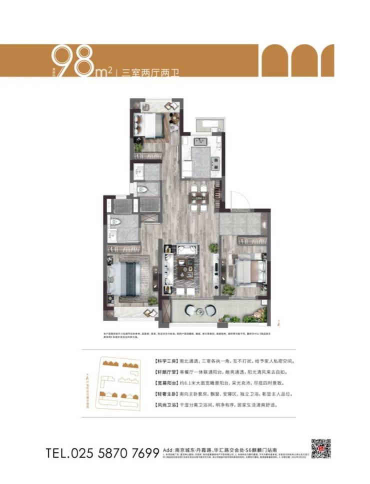 主力户型建面约98、114㎡都做了三室两厅两卫设计。
