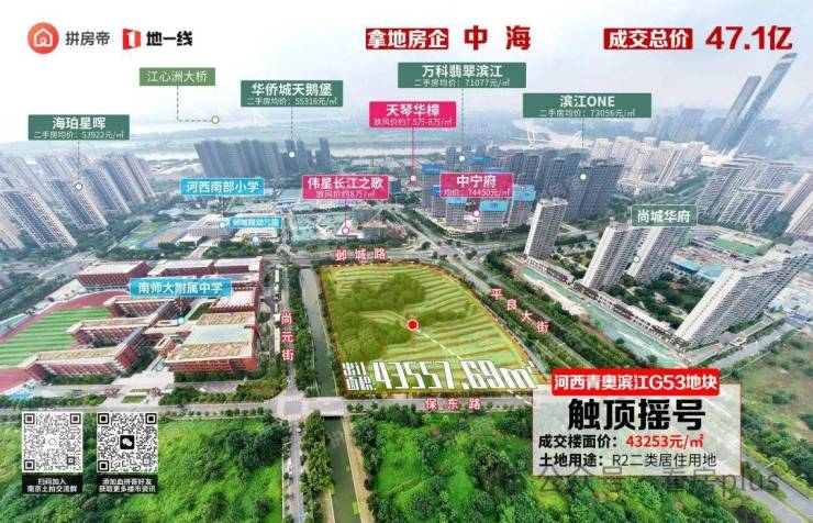 河西中又要迎来重磅纯新盘!G42地块于23年8月出让,被中建东孚摇号竞得,成交总价19.1亿元,成交楼面价43056元/㎡。
