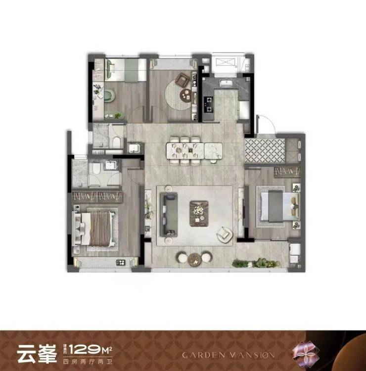 四房两厅三卫设计,大开间、短进深设计。