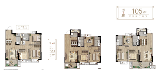 江宁孔雀城紫樾澜庭精造高空间利用率产品,目前在售建筑面积约87-105㎡精妆三房,户型方正,三开间朝南,舒适人居。满足城市置业人群对未来的想象,将美好生活无限延展。