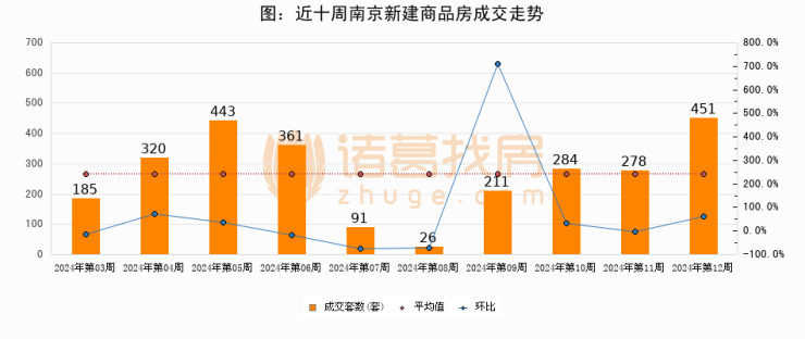 进入2024年第11周(03月11日-03月17日),南京新建商品房成交451套,较上周增加173套,环比上涨62.2%