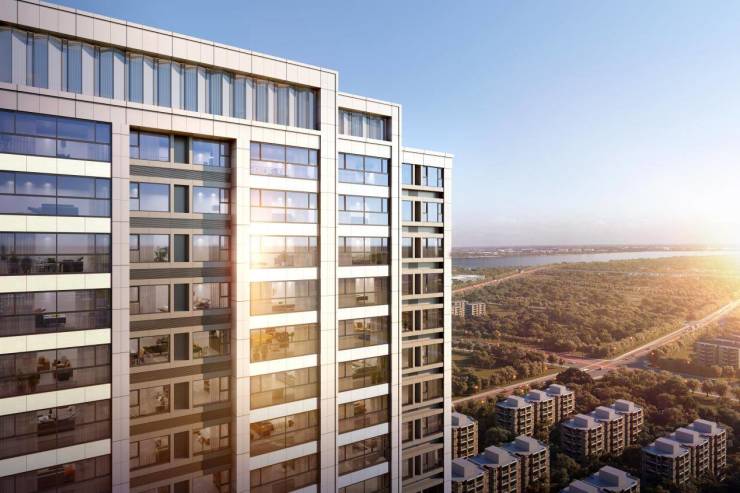 “铝板基座+线框立面+大面积玻璃顶部”三段式设计,经典历久弥新。全景落地窗设计,打破室内与窗外景观的隔阂,南向约0.42窗墙比,搭配大量玻璃幕墙,让建筑于自然中自由生长。