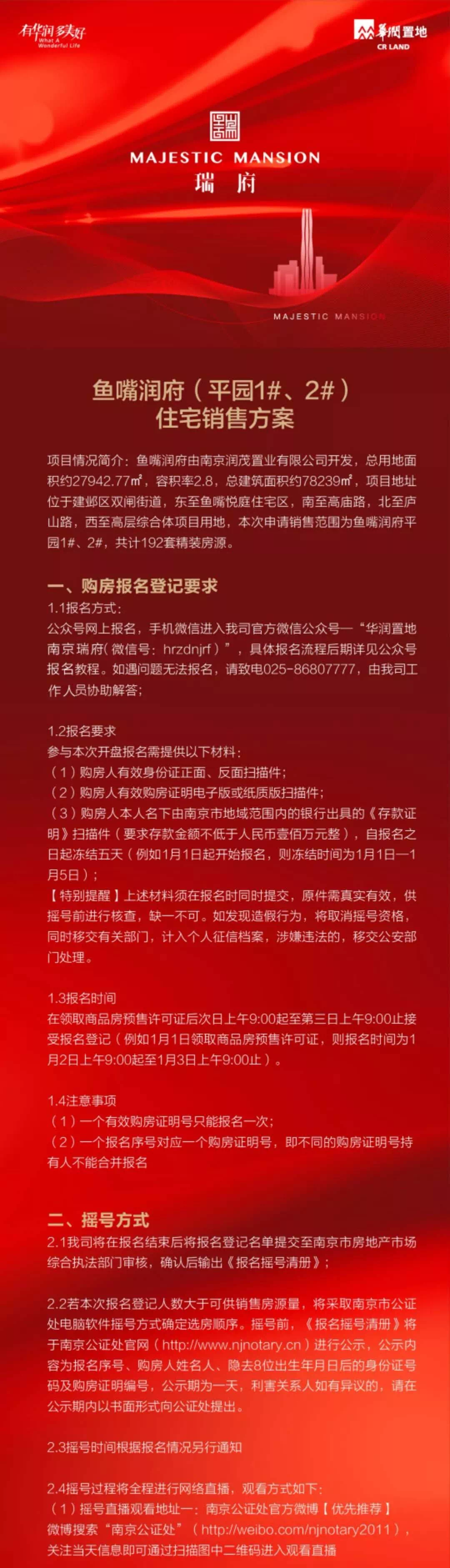 报名方式:关注“华润置地南京瑞府”公众号,进行线上报名