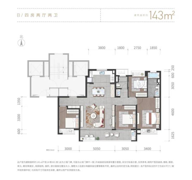建面约143㎡的升级装修示范单位: