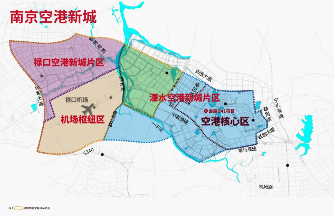 作为临空经济示范区的核心,溧水空港新城当仁不让。除了近机场枢纽区,内部还规划有会展小镇,并围绕会展小镇丰富商业休闲中心、会议中心、五星级酒店等配套。较江宁禄口空港新城比,先天优势突出。