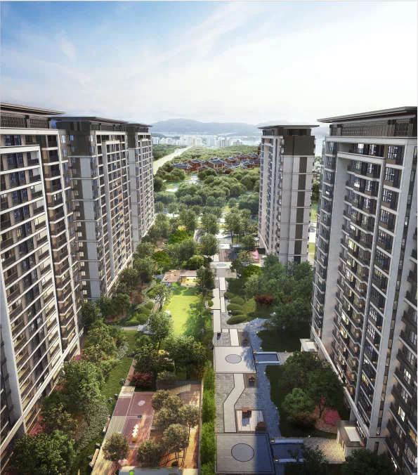 项目共打造14栋25-26F高层住宅,采用围合式建筑布局,优化提升楼栋视野及采光。外立面采用现代化公建立面风格,颜值十分在线!