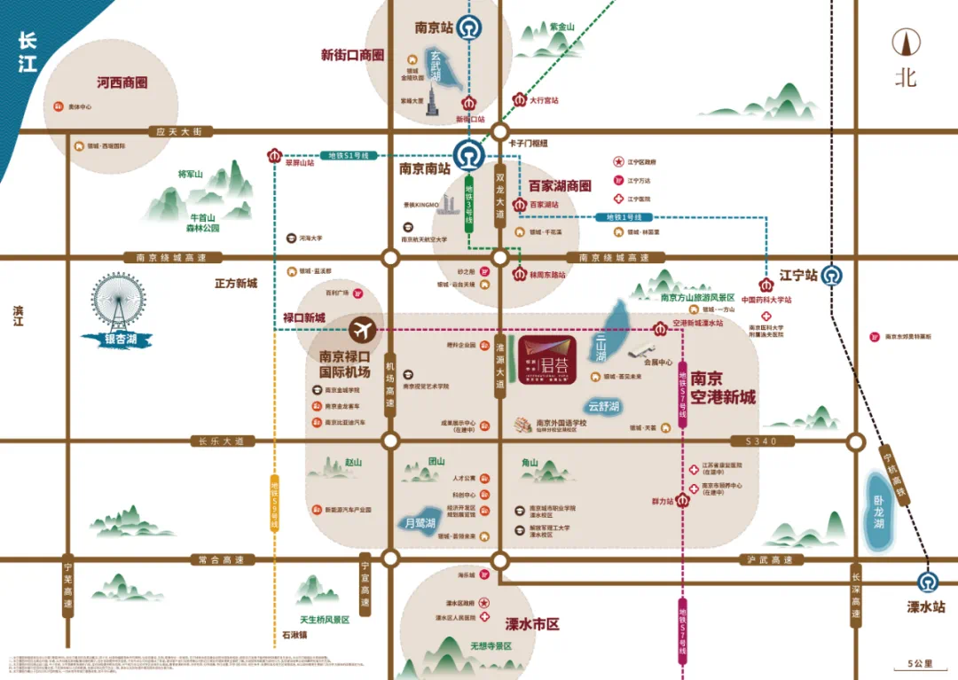 项目位于空港新城核心居住区域,直线距离空港新城溧水站约1.5公里,未来业主可通过地铁S7号线换乘S1号线,10站即达南京南站城。