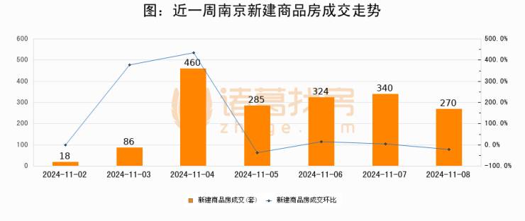 【南京成交日报】11月08日新房成交270套、二手房465套;涨价房源52套