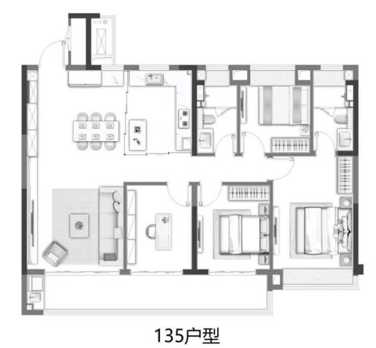 建筑面积约135㎡户型展示空间(以实际交付为准)