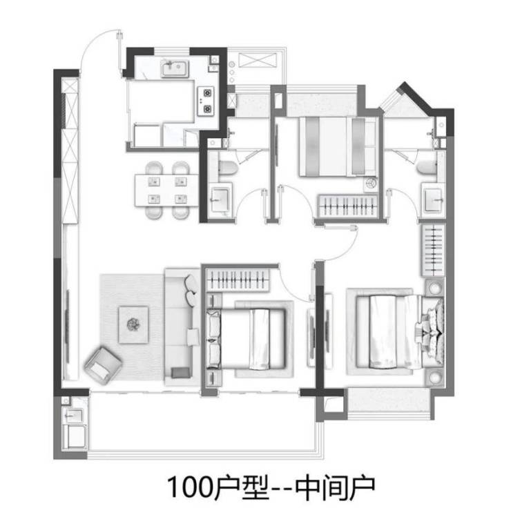 璀璨璟园共打造两款户型,建面约100㎡三房面向品质首置客群,建面约135㎡四房面向品质改善客群。