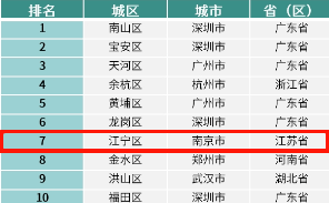 最新发布的《2023年赛迪创新百强区研究报告》中,江宁区再次跻身全国前十,位列全国第7、全省第1。