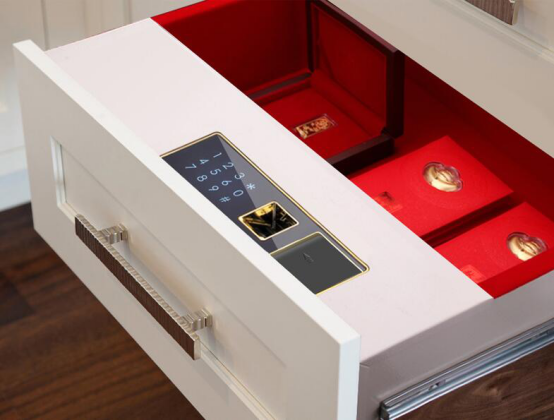 还有一些贵重的物品像是一些女主人的项链耳环,手表之类的就要考虑安全性了,可以做一个带密码的抽屉,把一些贵重的首饰都锁起来。