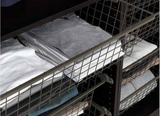 像是一些T恤之类的衣物是可以叠放的,不怕出现褶皱的,可以放在单独格子抽屉里面或者是折叠好后放在收纳篮里