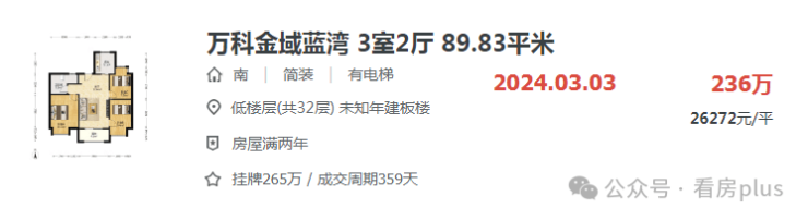 九龙湖的万科金域蓝湾89平的小三房,总价236万就能买到。