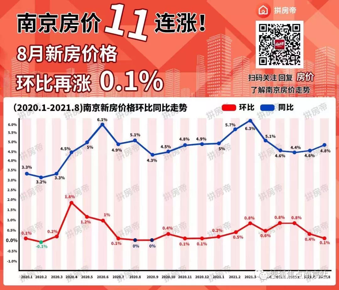 日前,国家统计局公布了8月较新房价数据,其中南京新房价格又涨了0.1%,而且已经连续11个月上涨!
