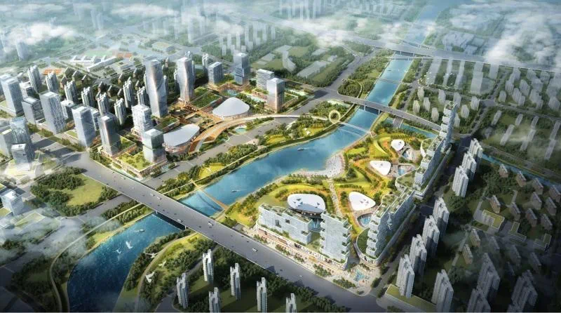 包括20万方文化演艺中心、图书馆、数十万方大型商业综合体、区域总部甲写、五星级酒店、滨水风光绿带等一揽子投入。形成尺度宜人的“滨水CAZ活力区”。