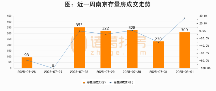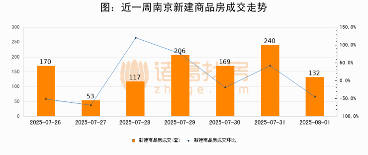 【南京成交日报】08月01日新房成交132套、二手房309套;涨价房源64套