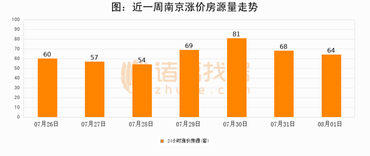 根据诸葛找房数据显示,南京24小时涨价房源量为64套,较07月31日减少4套,环比下降5.9%。与此同时,涨价房源占比小幅回落,对于购房者来说是一个入市窗口期,购房者可抓住时机入市。