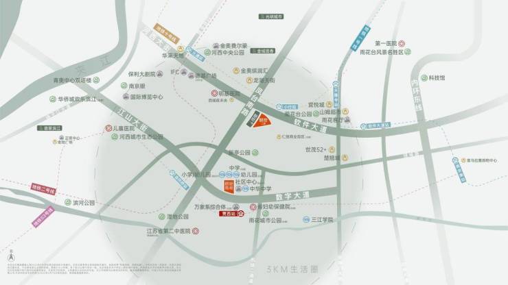 小行|万科·朗拾位于河西CBD和中国软件谷两大产业增长极中心,承起于河西大街和软件大道,串联金融-科技-互联网的核心产业链条,直线约3公里范围内汇集龙湖河西天街、雨花客厅、宜悦城、华采天地、ifc、德基等,同时享受河西、雨花的商业配套,看城市灯光渐次璀璨。