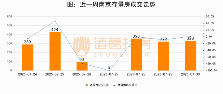 从存量房来看,2025年07月30日南京存量房单日成交328套,比昨日增加6套,环比上涨1.9%。从近一周存量房成交来看,南京存量房日均成交套数为258套,07月30日单日成交328套,高于近一周平均水平27.1%。