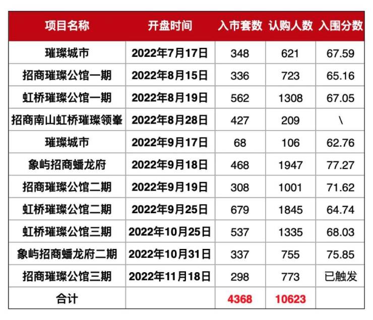在上海,招商蛇口连续推出璀璨公馆、璀璨城市、璀璨领峯等众多作品,直接引爆上海楼市。短短半年时间,璀璨1.0五子相继入市,在上海留下了足以彪炳史册的销售传奇—4368套房,吸引了全市超过1万组认购客户,接近2.5个人抢1套房!