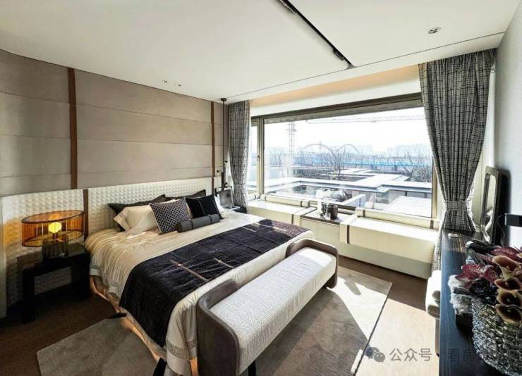 超36㎡的超级大主卧,面宽约4米,带270度的转角飘窗。