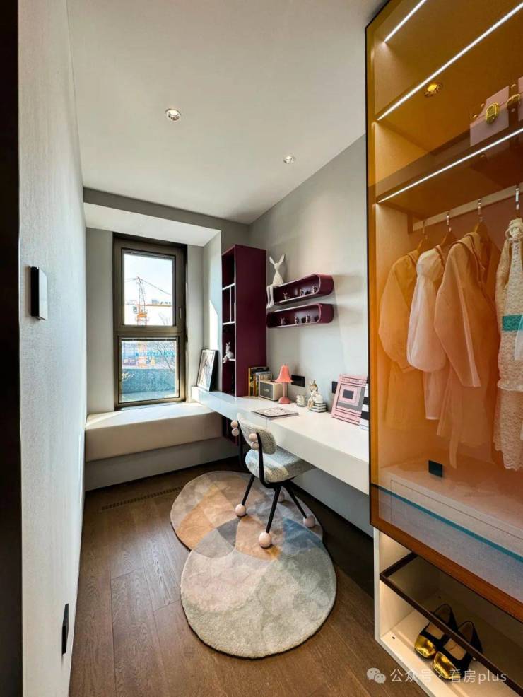 虽然这个空间不大,样板间内也只放了一排衣柜和一张桌子,但其实这是每个家庭都迫切需要的空间改善。对于孩子来说,作为一个学习空间完全够了,而且生活体验感瞬间不一样了,专属的私密空间更能帮助孩子提高专注度和效率。