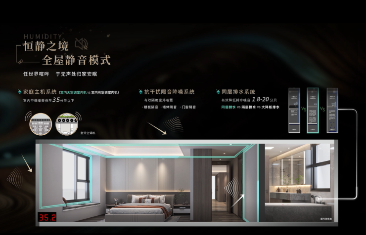 •恒静:家庭无主机系统&抗干扰隔音降噪系统&同层排水,营造静谧环境