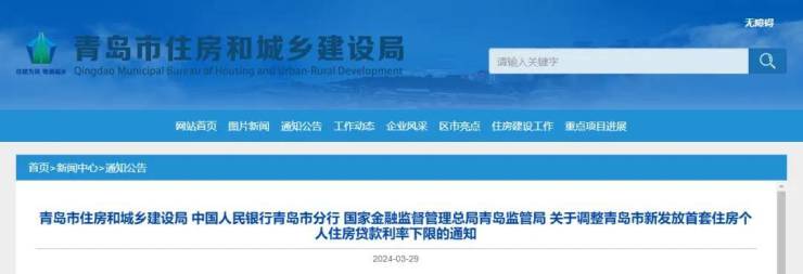 4月2日,青岛市住房和城乡建设局等七部门联合发布《青岛市2024年进一步促进房地产市场平稳健康发展若干政策》,旨在通过多项措施稳定房地产市场。主要措施包括推行“房票”制度,上浮公积金贷款额度,优化二手房“带押过户”流程,支持高品质住宅开发建设,以及取消首套住房商业贷款利率下限等。