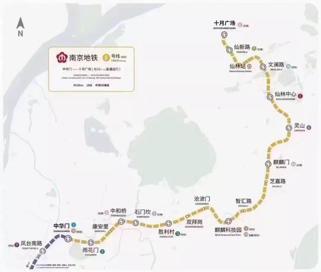 2号线延伸线(经天路-仙林湖);2-9号线接驳线(水西门大街-集庆门大街);3号线西延(林场-花旗营);4号线西延(珍珠泉-南京北站);4号线北延(仙林湖-华侨城东);8号线(中华门-十月广场);