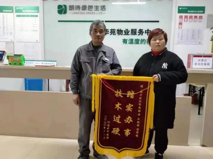 一日,物业服务中心接到报修电话,说是一位业主家中马桶主管道堵塞。工程师陈师傅即刻上门,为业主解决问题。没想到的是,陈师傅不仅帮他维修了管道,还主动将阳台台盆、厨房下水、客厅吊灯线路都排查了一遍。陈师傅热情的服务态度和优质维修技术,得到了业主的充分认可。为此,这名业主特意送来锦旗以示感谢。