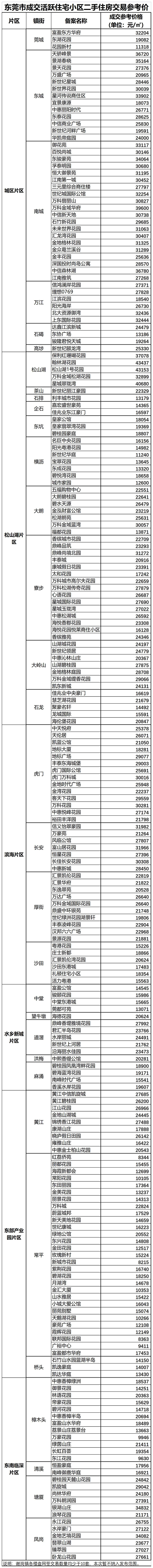 据了解,此次公布的东莞市成交活跃住宅小区分布于城区片区、松山湖片区、滨海片区、水乡新城片区、东部产业园片区、东南临深片区,共计218个二手住房小区。