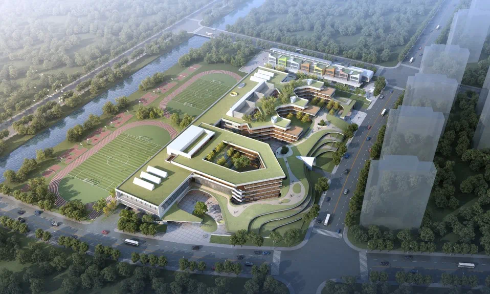 ▲康盛路中小学/幼儿园鸟瞰效果图