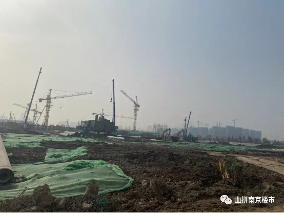 样板间后面就是项目所在地,工地可见各种大型设备正在施工,目测应该还处于打地基阶段。