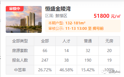 今天,龙江学区房恒盛金陵湾的报名结果也出炉了,66套房共计247人报名,综合中签率仅约27%!